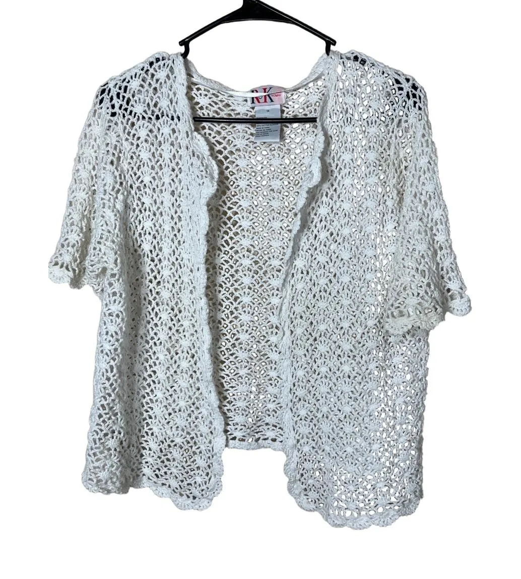 R&K Womens Crochet Cardigan Size 1X White Vintage Open Front Scalloped Edges Bohemian Summer Condit... Show more