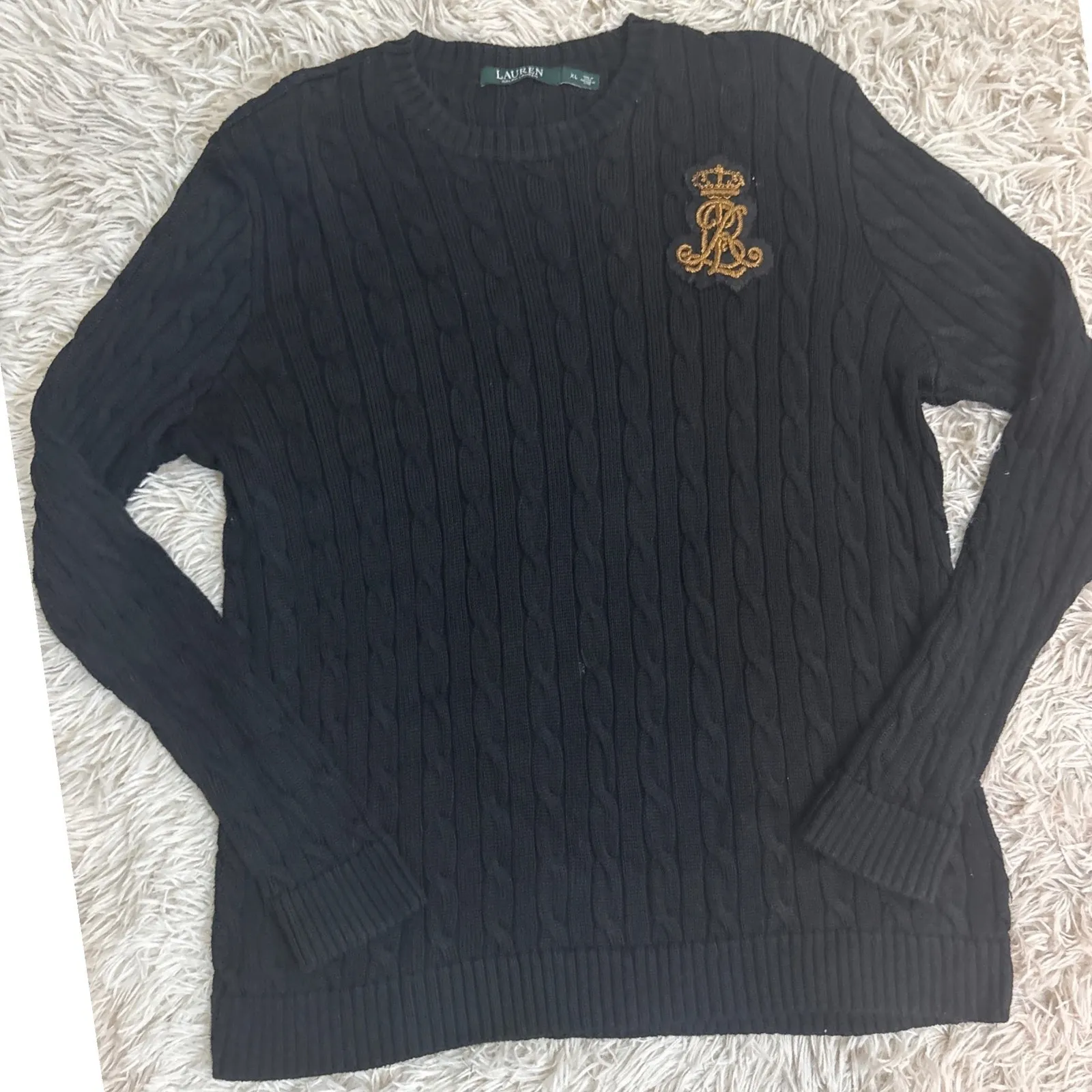 Wrap yourself in timeless elegance with this Lauren Ralph Lauren black cable knit sweater. The intr... Show more