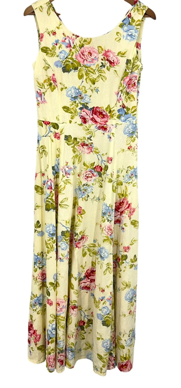 Vintage Real Comfort by Chadwicks 90s Cottagecore Floral Maxi Dress Linen Blend Pre-Owned in Good C... Show more