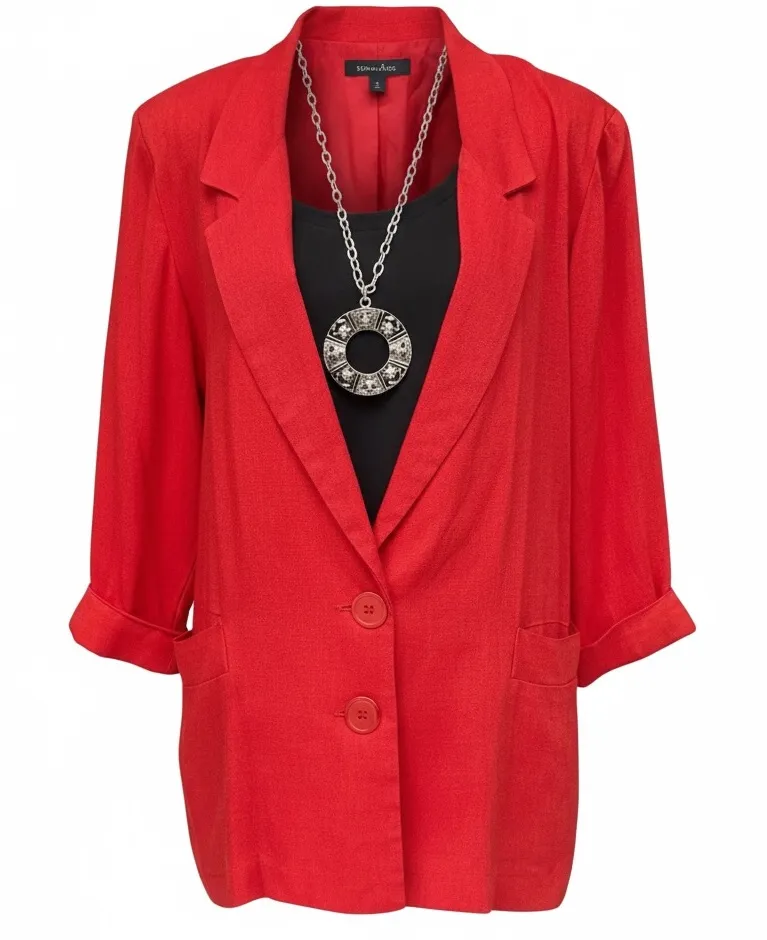 Classic vintage Stephen Douglas red blazer. Relaxed fit with a two-button front, cuffed sleeves, and light shoulder padding. A timeless piece for polished styling. Brand: Stephen Douglas Ltd. Size: 10 Measurements: Pit to pit 21”, Length 30” Material and Care: 100% Rayon, dry clean only Condition: Excellent vintage condition vintage blazer, Stephen Douglas blazer, red blazer, classic blazer, retro fashion, power blazer, structured blazer, timeless style, elegant outerwear, relaxed fit, statement blazer Christmas holiday red blazer