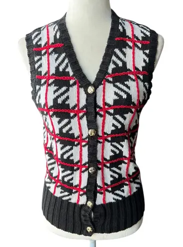 Vintage Red, White, & Black Patterned Knit Vest Ornate gold buttons Size Petite Medium Brand: the v... Show more