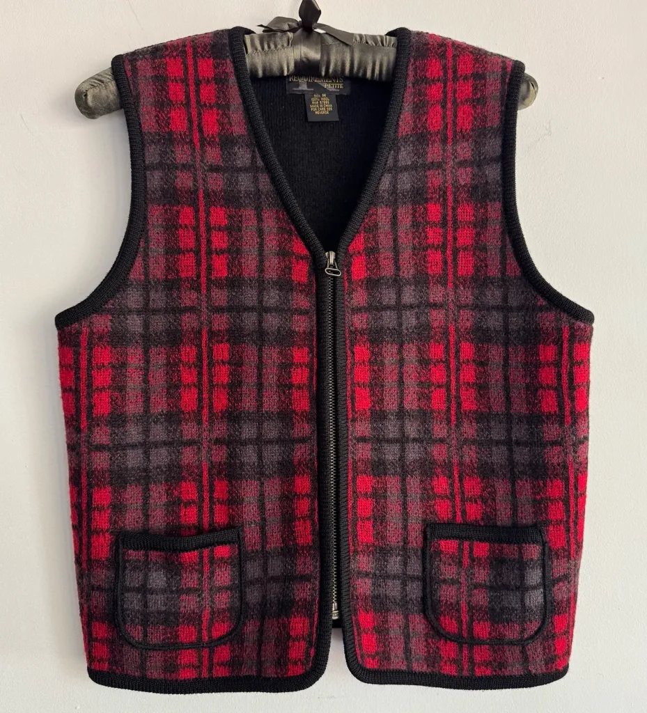Vintage Requirements Petites M Red Plaid Wool Winter Vest Full Zip Teacher Core, preowned in EUC. Clean. Size PM Chest flat across 19” Mast across at hem 18.5” Length 22” Full zip wool vest, two small front pockets.