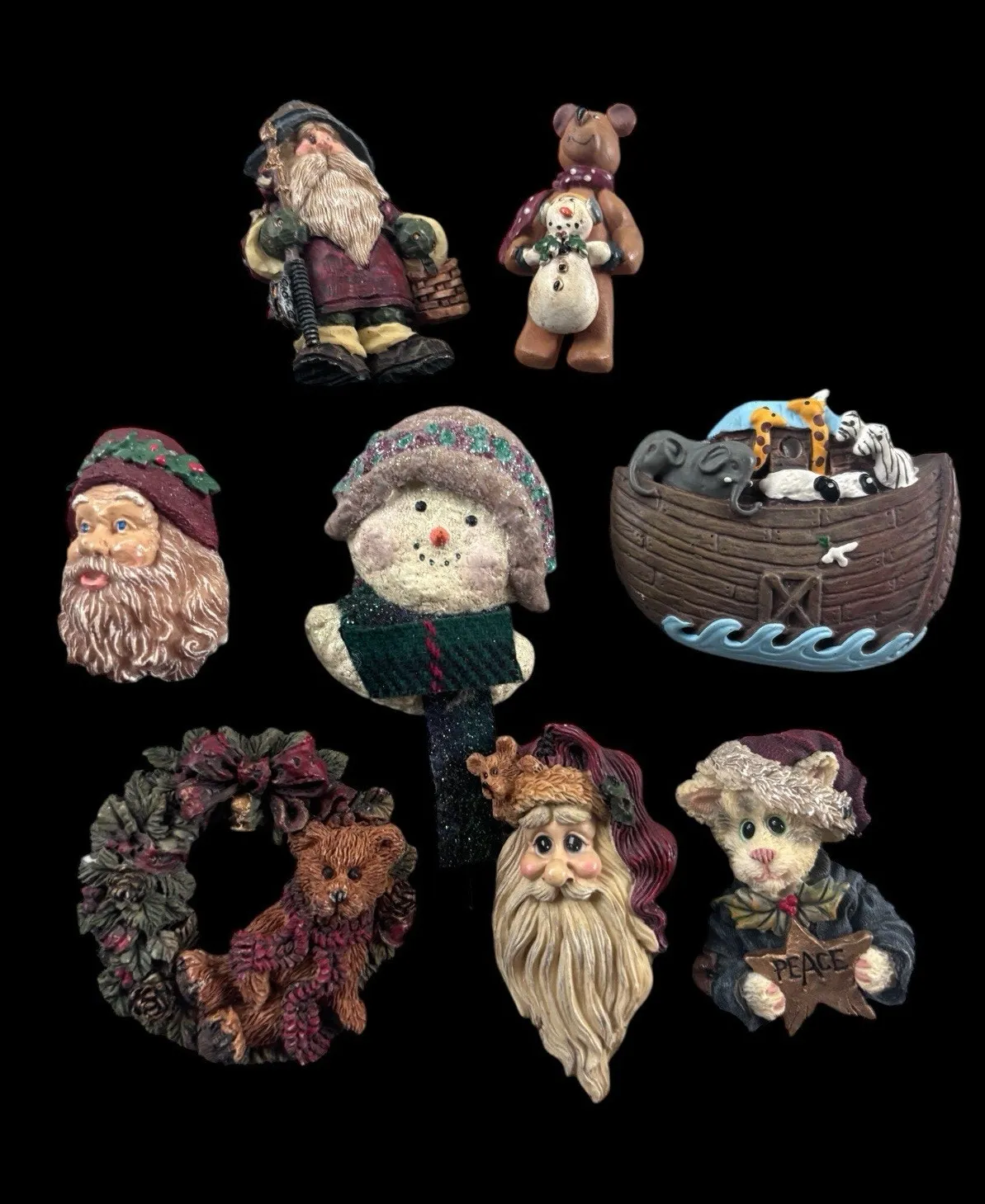 Vintage Resin Pins Brooches Holiday Christmas LOT of 8 Bears Santa Wreath Cat - $20 - From Tamara