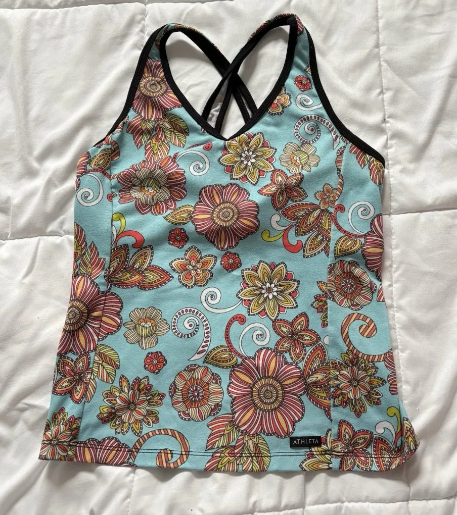 This Vintage Retro Y2K Athleta Floral Blue Tank Top with a Built-In Bra is a stylish and comfortable... Show more