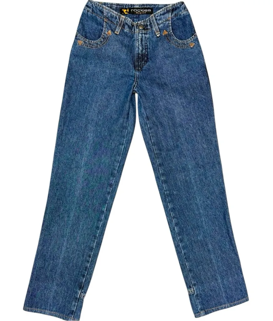 Classic vintage Rockies jeans with the iconic high-rise fit and slim leg silhouette. Durable 100% cotton denim with signature Rockies details. Perfect for western, vintage, or everyday wear. Brand: Rockies Size: Tagged 26 Long (see measurements for best fit) Measurements (approx, flat): • Waist: 13½” • Front Rise: 9½” • Back Rise: 13” • Inseam: 29½” Material and Care: • 100% Cotton • Machine wash cold, turn garment inside out • Do not bleach • Line dry or air fluff on low • Care on reverse Condition: Excellent used condition (EUC). Light, natural wash wear consistent with vintage denim. No major flaws noted. vintage rockies jeans, high rise jeans, western denim, slim fit jeans, vintage denim women, cowgirl jeans, 90s jeans, classic blue jeans