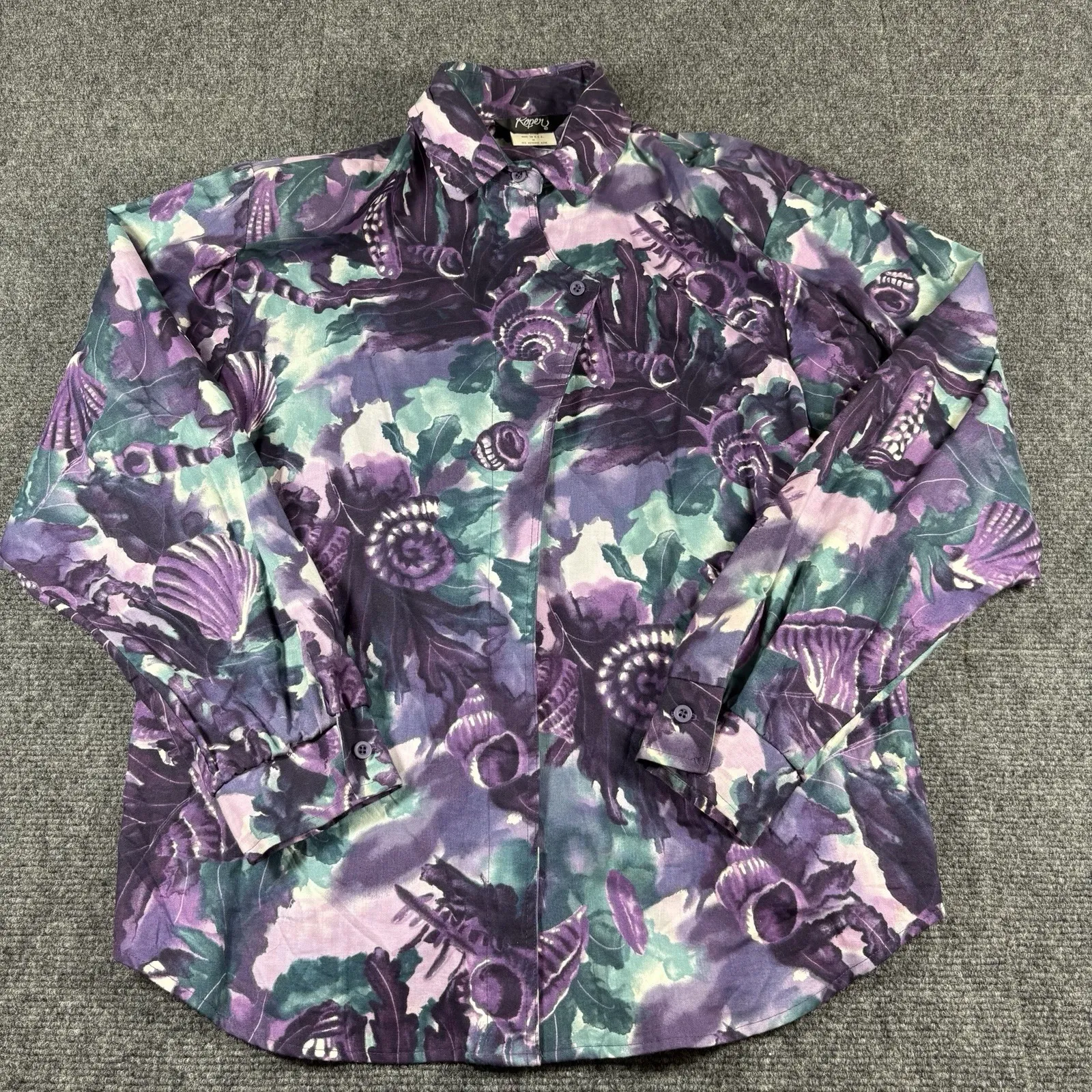 No holes or stains Elevate your wardrobe with this vintage Roper button-up shirt. The all-over print design adds a touch of Western flair, while the long sleeves and machine washable fabric make it a practical choice for any casual occasion. This shirt is a perfect addition to any vintage lover's collection, and its multicolor design will surely make it a standout piece in your wardrobe. The shirt is a regular fit for women, size M, and was made in the United States. It features a button closure and is not personalized. Whether you're going out for a day of work or play, this Roper shirt is a great choice for any stylish woman who loves vintage fashion.