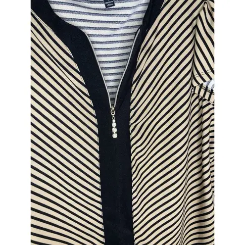 Vintage Rose Womens Top SS Blouse Striped 1/4 Zip Jeweled Gold Black Tan Tunic FAST SHIPPING Shoul... Show more