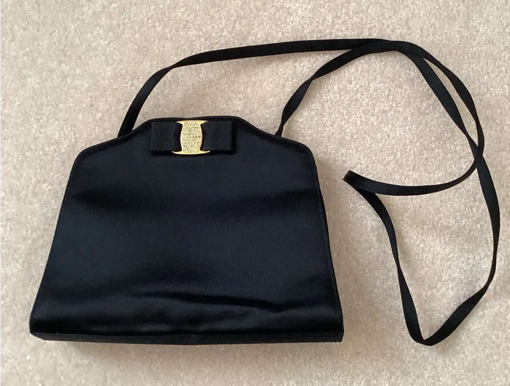 Vintage Salvatore Ferragamo Black Satin Evening Shoulder Bag Clutch Black Tie Gold - $150 - From Harim