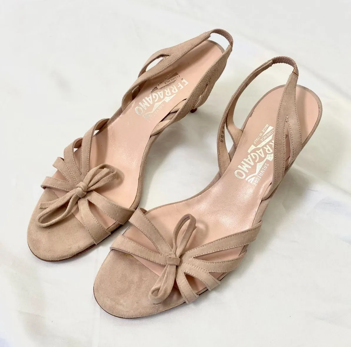 š VTG Salvatore Ferragamo Pink Bow Kitten Heels š ą¼ Brand: Salvatore Ferragamo, Made in Italy ą¼ Size US 6 ą¼ genuine blush pink suede leather strappy dainty coquette kitten heels ą¼ bow detail on open toes, stretchy slingback ą¼ wear on soles as pictured, upper looks great, overall gently preowned vintage shoes š§š¼ bundle for additional discounts Tags: #coquette #90s #eurochic #preppy #designer