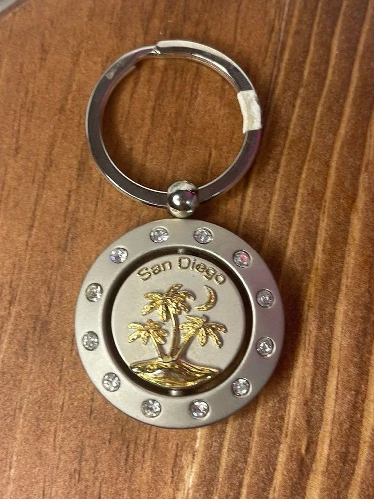 vintage San Diego State circle Shaped Metal Keychain - Rhinestones Palm & moon. - $11 - From Amanadyunique