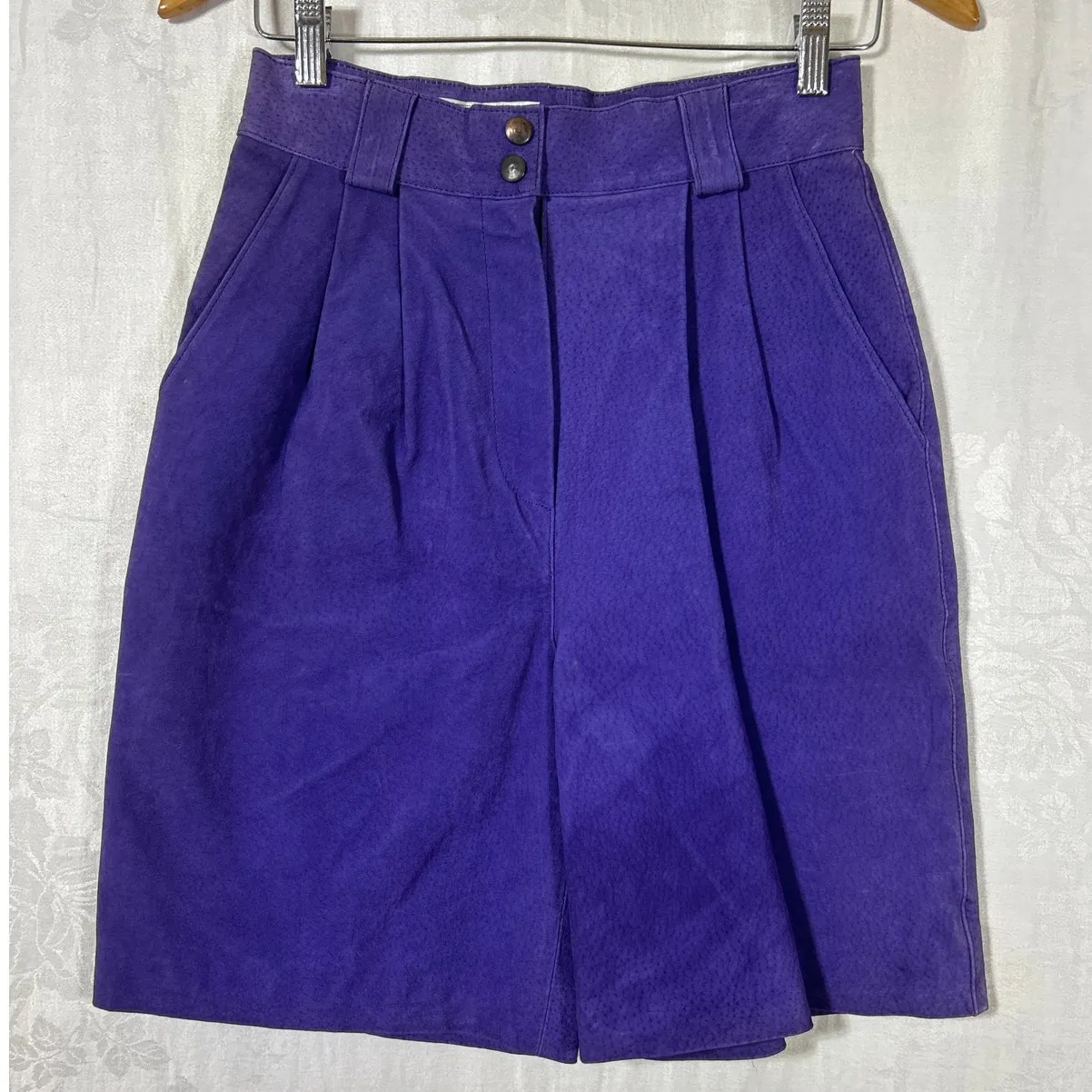 Vintage San Remo Leather Shorts 8 Purple Pleated Long Mom Lined Pebbled Suede - $29 - From Jennifer