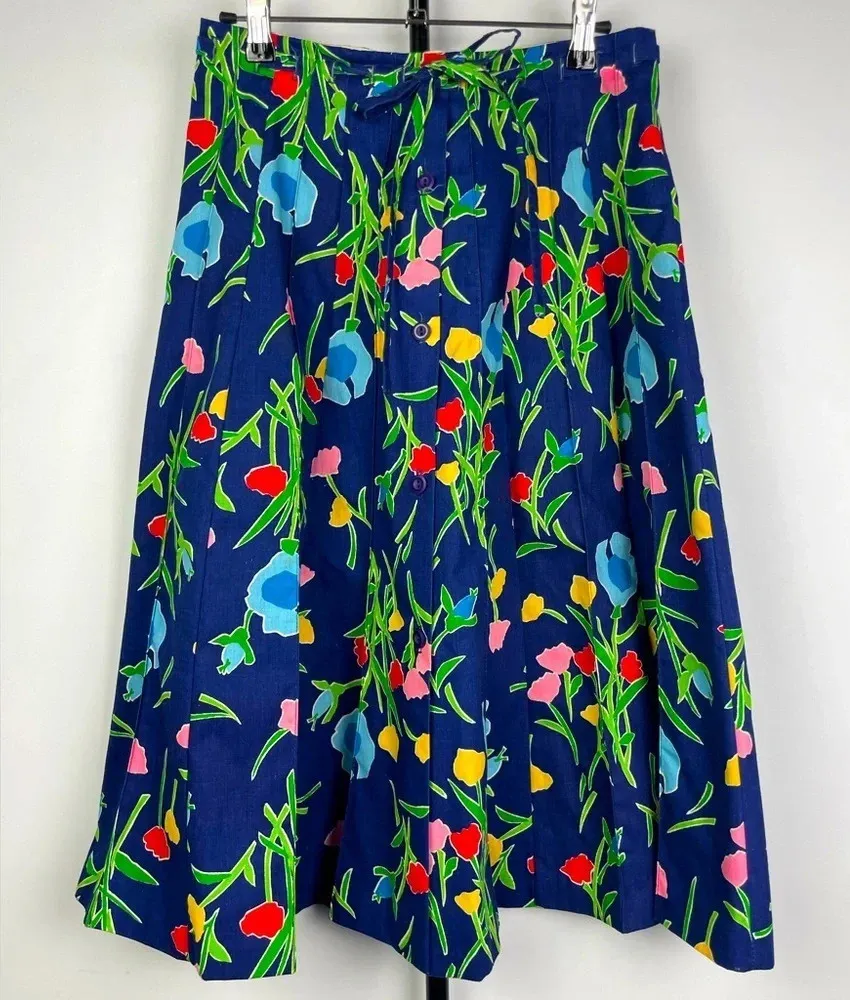 Vintage Sanibel Sport Blue Tulip Floral Button Up Pleated A-Line Skirt Nice Used condition Some mi... Show more