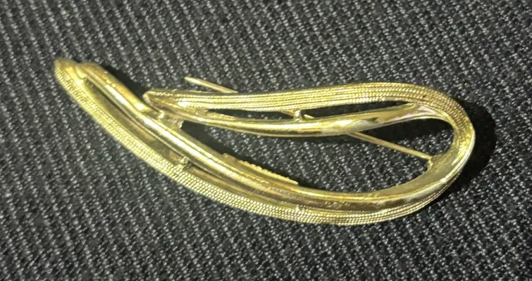 Vintage Sarah Coventry Brooch silver Tone Modernist Mid Century Costume Signed Statement Piece. Measures 7/8" x 2-3/4" inch with rollover pin catch. Looks great on and in excellent Pre-owned Condition.