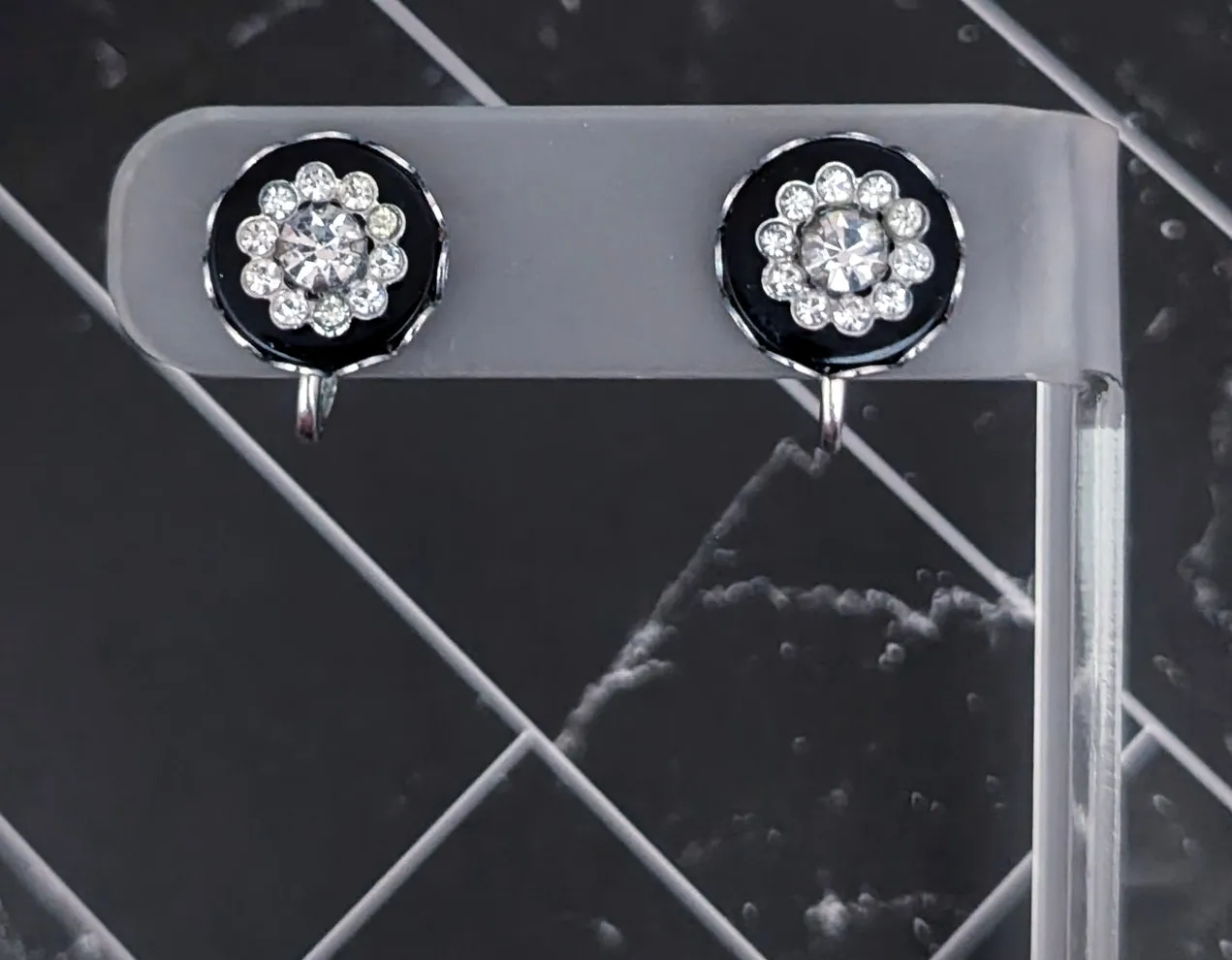 These earrings measure about 0.5". Light marks and signs of wear to rear. Some silver tone wear to screws and where the screw meets the back of the earring. Small amount of clouding to some gems. I am unsure of the material of the gems; however, there are none missing. Preowned vintage earrings, sold as shown - I am unsure of material type(s) because of this. Pictures show different angles for you to review - while I attempt to note any defects, some tarnish/signs of wear may be visible that are not otherwise stated. Earrings are tested and photographed on a thin/smooth earring stand (not included) to show that the screw backs are in working order. I ship quickly and provide tracking information but delivery times are an estimate. Item is located in the United States. Country of manufacture cannot determined.