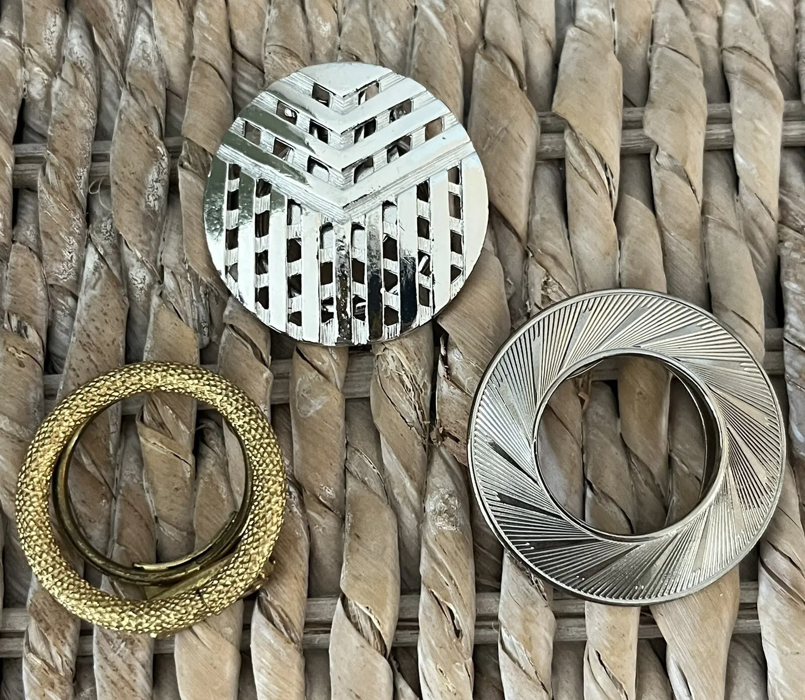 Vintage set of 3 (3) fashion jewelry faux gold Silver scarf Round slides / clips - $13 - From Kristel