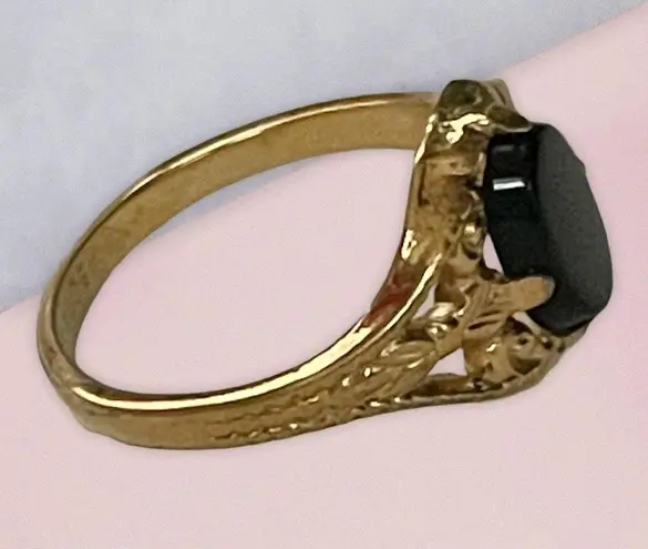 In excellent vintage condition. Gold tone with a black oval stone. Stamped seta on the inside. Size 5 "When Don and Angie Seta founded the Seta Corporation more than 40 years ago, their mission was simple...To always treat each and every customer like a member of the family. From the beginning, our goals have been to provide our customers with the finest selection of exquisite jewelry, watches and accessories that reflect elegant styling, exceptional value, and the highest standards of quality.