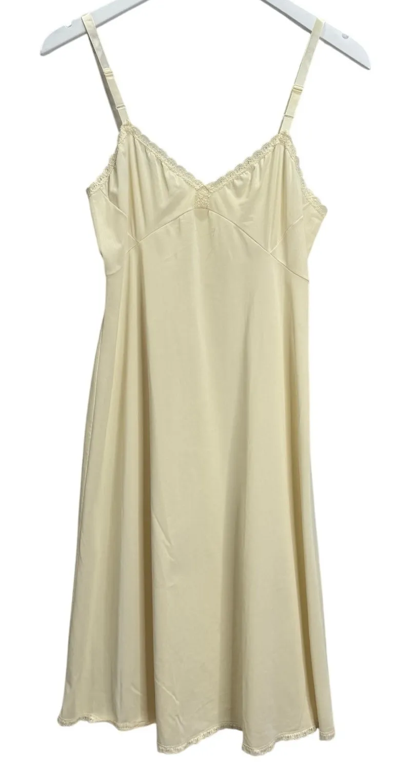 Vintage Shadowline Beige Full Slip Size 36 Tall (M) Lace Detail Nylon Dress Size M - $29 - From Alexis
