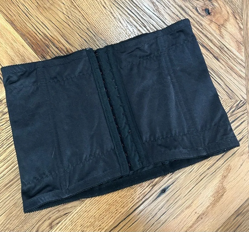 Vintage Crown-ette waist cincher / girdle, style 099. Tagged size 32 (fits like XL). Black floral jacquard, flexible boning, hook-and-eye front closure with two rows for adjustable fit. 75% nylon, 25% spandex. Made in Colombia with US components. Excellent structure — stitching intact, hooks secure, no major flaws. Measurements (laid flat): • Width: 14 in • Height: 9 in Perfect for: vintage lingerie collectors, shapewear enthusiasts, pin-up styling, retro photography, or functional everyday support.