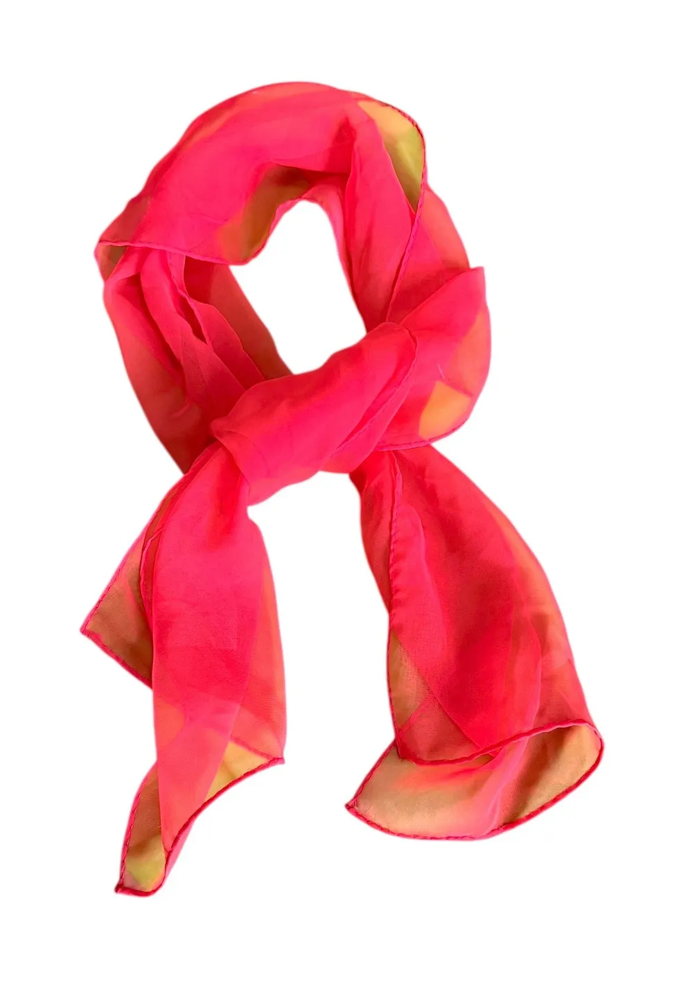 Sheer ombre scarf in coral pink and yellow hues. This lightweight chiffon accessory offers a delicate drape and vibrant color transitions. Perfect for adding a pop of color to any outfit, this scarf is ideal for a beach vacation, a casual day out, or as a stylish accent for an evening ensemble. 10" W x 48" L Type: Scarf Department: Women Material: Polyester Style: Rectangle Scarf Fabric Type: Chiffon Season: Spring, Summer Unit Type: Unit Keywords: chiffon scarf, lightweight accessory, ombre color, fashion scarf, vibrant colors, sheer fabric, women's accessory, summer scarf, gift idea, beachwear, travel accessory, fashionable, accent piece