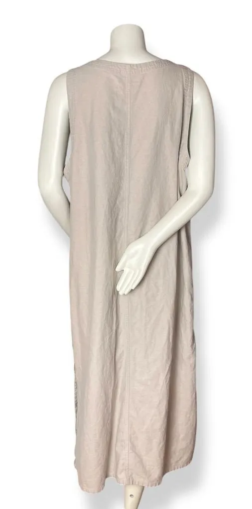 Vintage Erika jumper shift dress with buttons on one side. Midi to maxi, depending on wearer's height. No materials info, but fabric feels similar to linen. Condition: Gently preloved with natural wear on fabric, no holes or stains. No size or materials tag. Size: No size tag - estimating to fit as a size 1X. See approximate measurements for best fit. Pit to pit: 22.5 Across waist: 23.5 Length: 50 Cleaned and from a smoke-free home. Fast shipper!