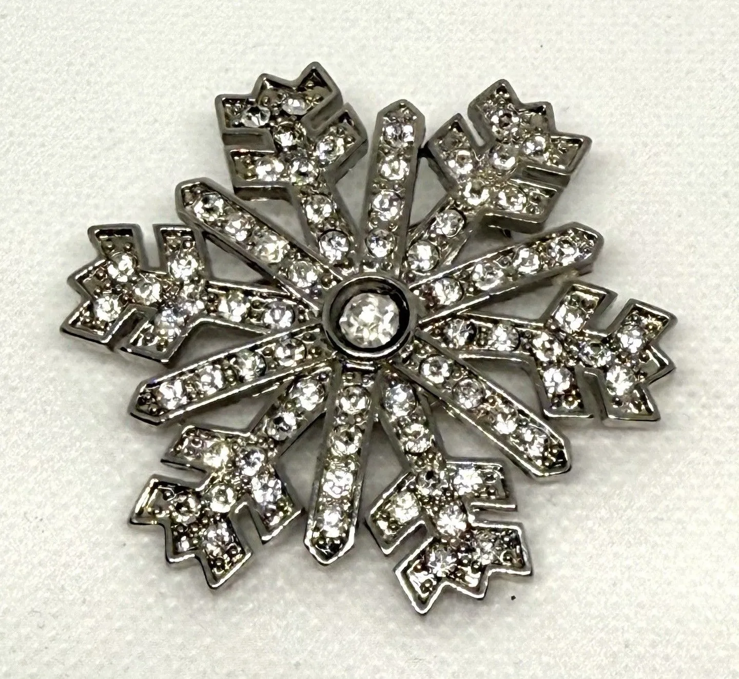 Vintage Signed Monet Silver Tone Rhinestone Snowflake Brooch Fashion Jewelry Pin - $27 - From Lace