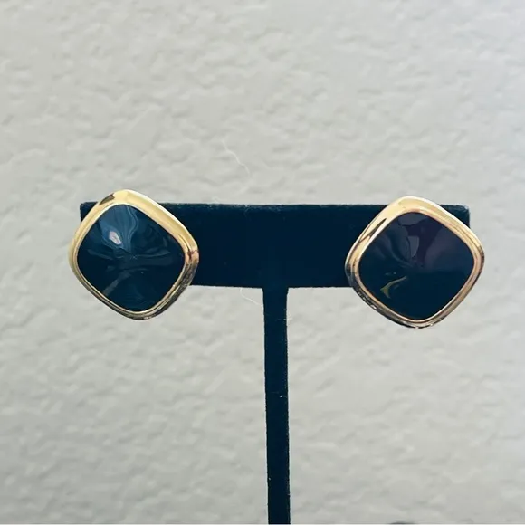 Vintage signed Sarah Coventry 24k gold plated with black resin earrings - $29 - From Annaspace