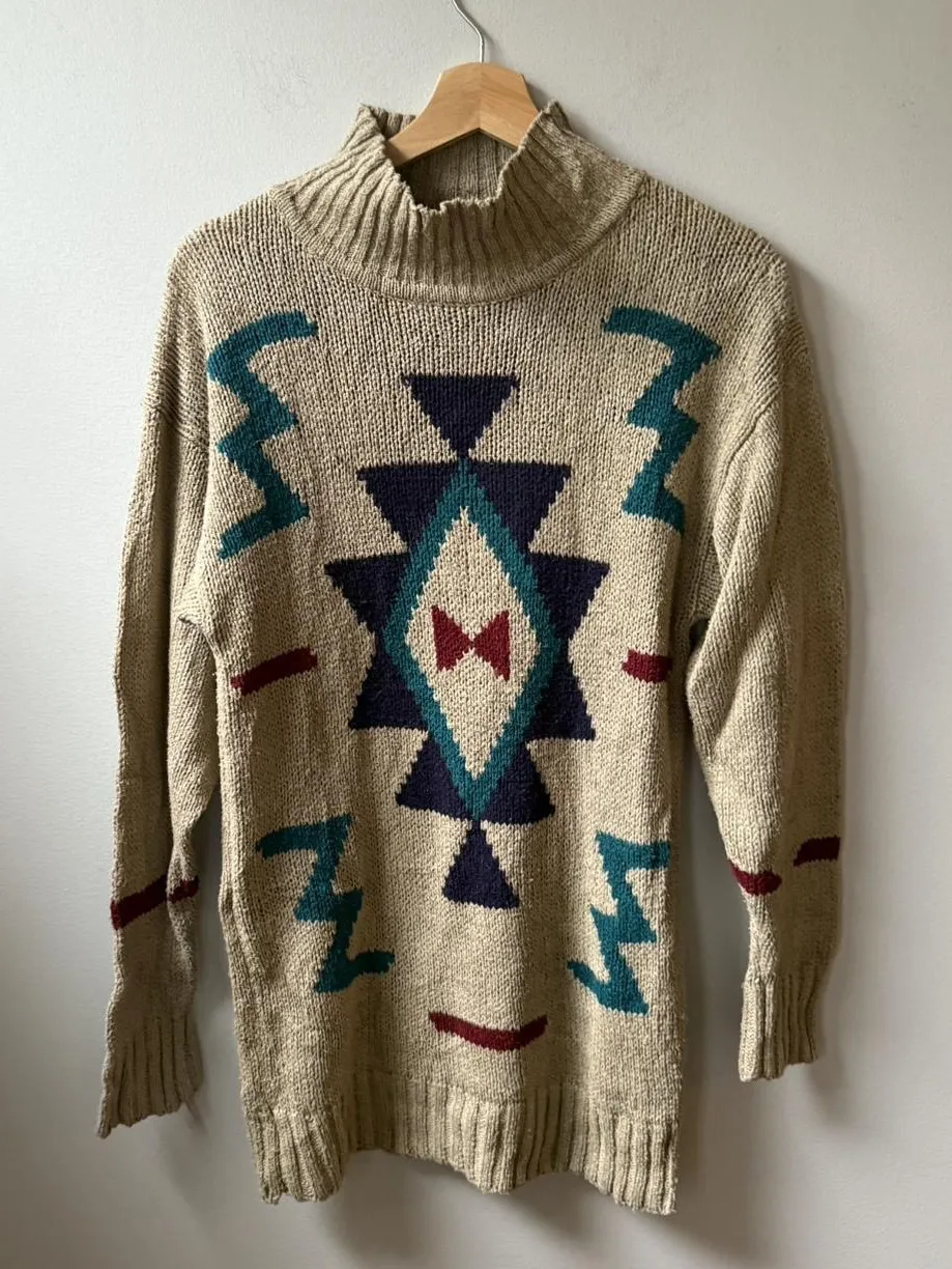 Vintage Silk Club 100% Silk Southwestern Knit Sweater — Made in Hong Kong (S) Tan - $45 - From goodfornow