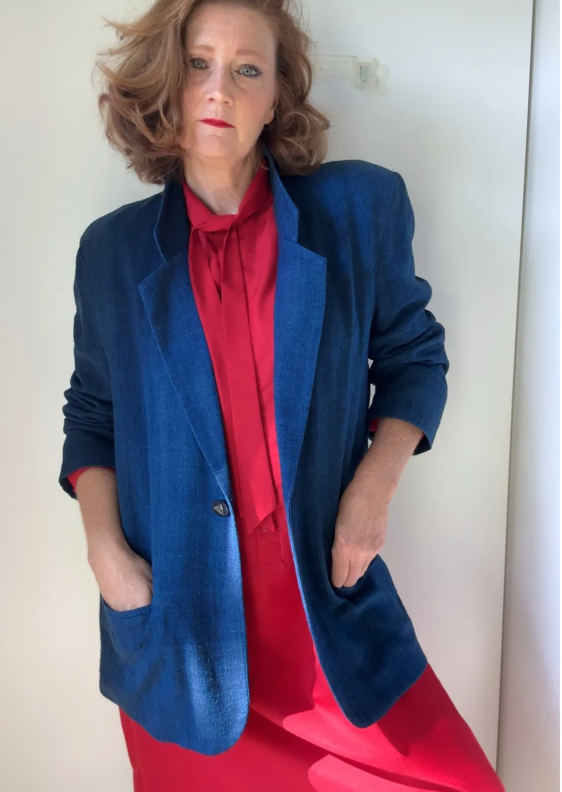Elevate your wardrobe with this vintage 90s silk women’s blazer in a rich denim blue. Sized 8, this classic piece blends timeless tailoring with luxurious fabric, making it perfect for business, professional settings, or polished everyday looks. Details: Label: Wraps Collection WEstern Wear 100% Silk Fully Lined Pockets Lightweight Raw Silk Measures Flat Chest 23" length 28" Shoulder to Shoulder 18" #VintageBlazer #SilkBlazer #90sFashion #VintageStyle #BusinessChic #ClassicBlazer #BlueBlazer #VintageWardrobe #RetroStyle #90sBlazer #OfficeStyle #LayeringPiece #VintageSilk #MinimalistFashion #VintageOutfit #90sWardrobe #SustainableStyle #VintageClothing #TimelessStyle #LadyBirdieVintage HGH 1.1 o AG25 297//