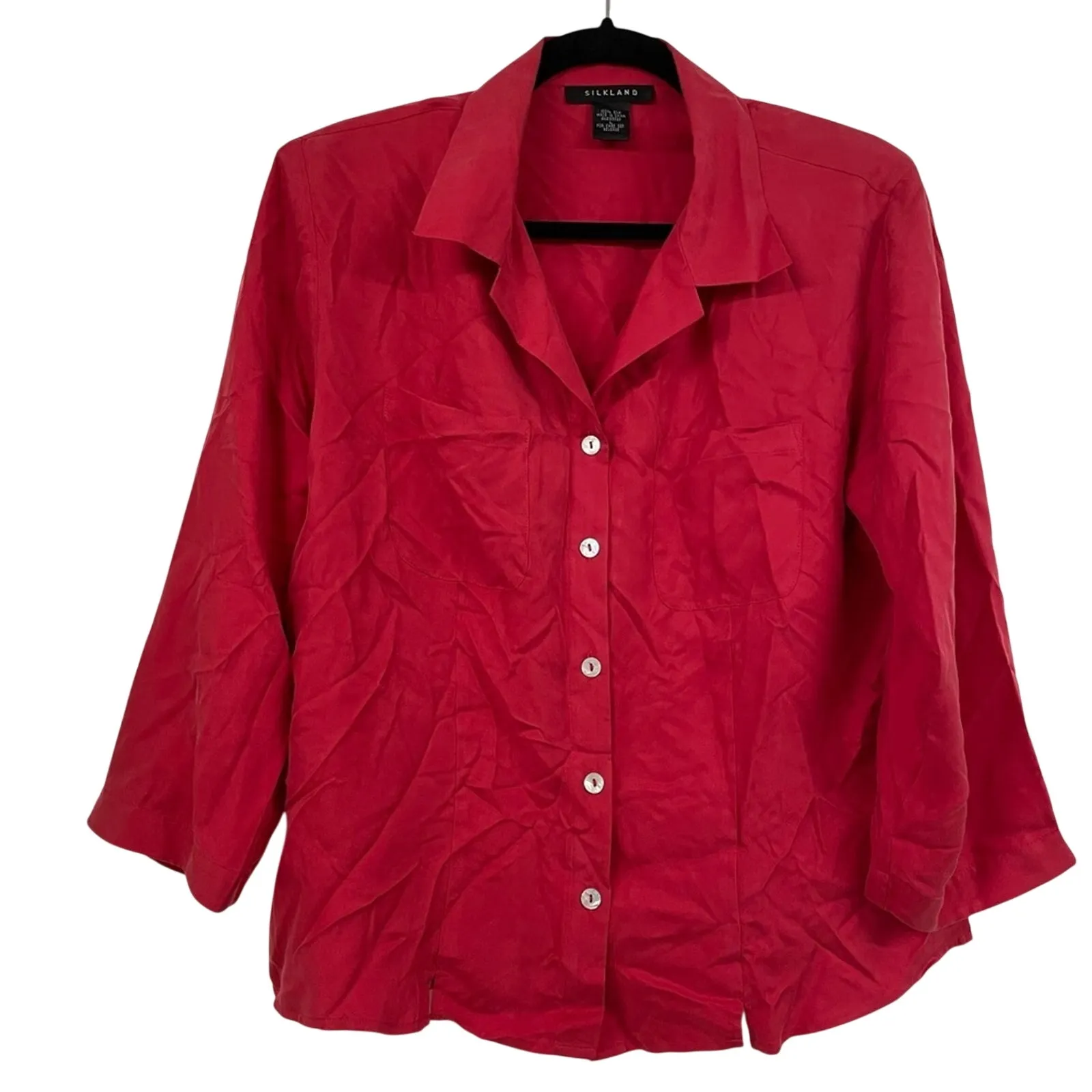 Vintage Silkland Red Silk Button Down Shirt Womens L Boxy Fit Natural Fibers Size L - $29 - From Lisa