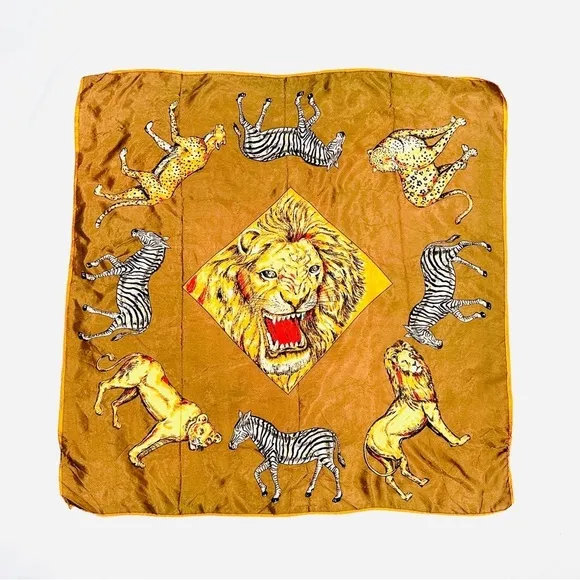 Vintage Silky Brown Safari Print Lion Zebra Cheetah Square Scarf - $24 - From Lacey