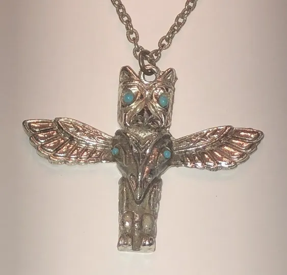 Vintage Silver Tone & Faux Turquoise Totem Pole Pendant Boho Retro Necklace - $18 - From Vault