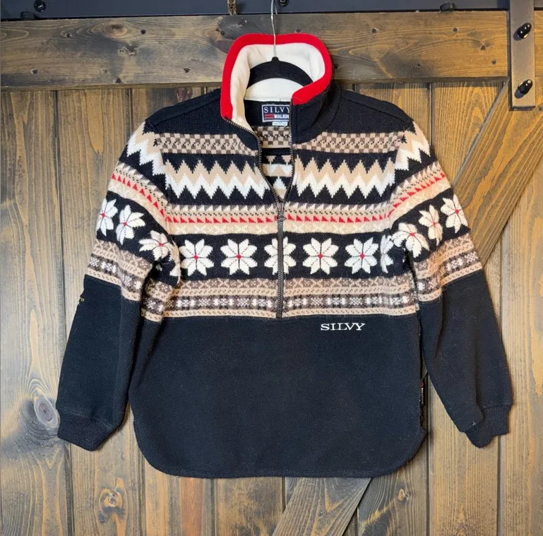 Vintage Silvy Italian Ski Sweater Nordic Fair Isle Alpaca Blend Black Size XS - $53 - From Latoya