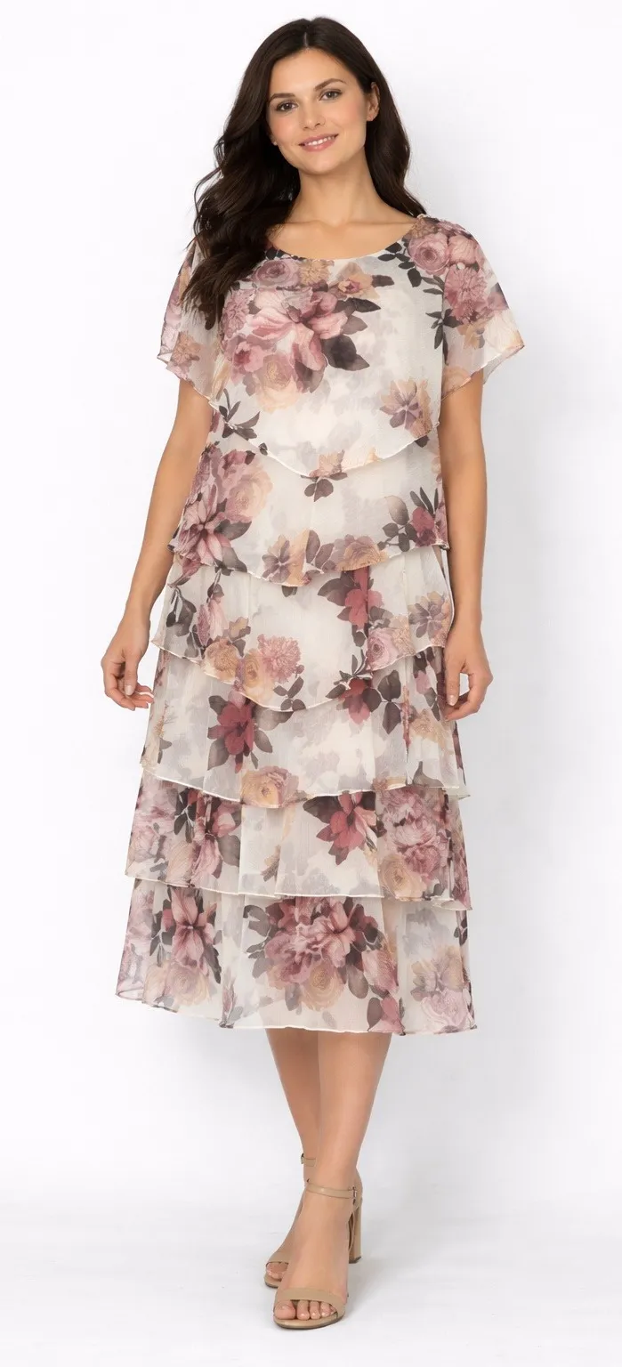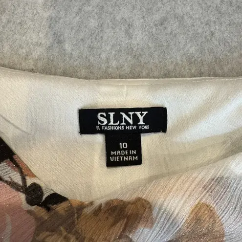 Capture ethereal beauty with this SLNY dress, designed to flow with every movement. A cascade of delicate floral blooms in soft pinks and taupes adorns a sheer overlay, creating a captivating visual. Tiered ruffles gracefully skim the silhouette, adding a touch of romantic charm and playful texture to the design. The flutter sleeves offer a soft, feminine touch, perfect for creating a memorable impression. Imagine yourself twirling at a garden party, attending a sophisticated brunch, or celebrating a special occasion with effortless elegance. Style: A-Line, Shift, Sundress Dress Length: Midi Department: Women Sleeve Length: Short Sleeve Pattern: Floral Occasion: Party/Cocktail, Casual Material: Polyester Fabric Type: Chiffon Neckline: Round Neck Season: Spring, Summer Garment Care: Hand Wash Only Country of Origin: Vietnam Excellent preowned condition - no rips, stains, or tears. From a smoke free, pet friendly home. Approximate measurements in photos. Seller Notes: -Same/Next Business Day Shipping -Smoke Free & Pet Friendly Home Keywords: SLNY, floral dress, tiered dress, ruffle dress, sheer overlay, pink roses, feminine, romantic, garden party, brunch dress, special occasion, elegant, flutter sleeve