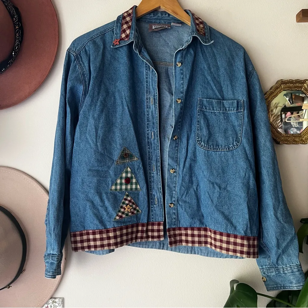 Vintage Snowman applique Denim Button Down‎ Women’s SIZE MEDIUM cottagecore Blue - $36 - From Samantha