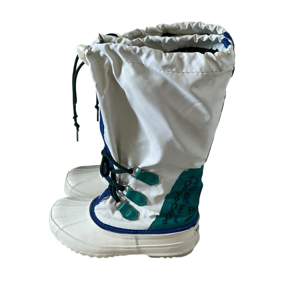 Vintage Sorel snowlion white boots purple teal nylon women’s nylon barn outdoor snow boots Some soil... Show more