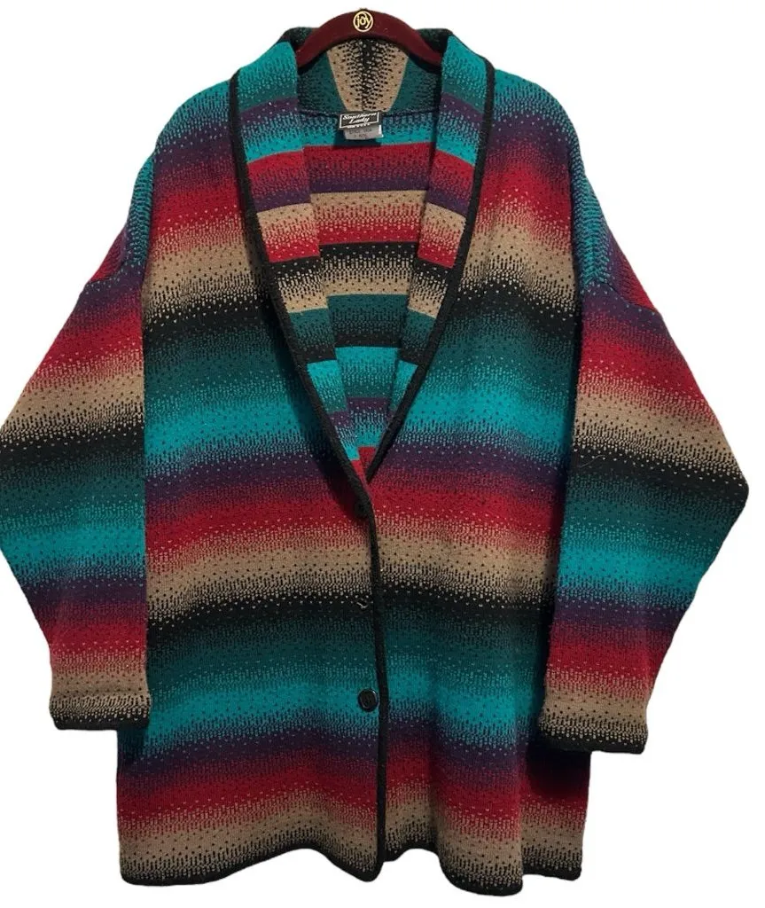 Brand: Southern Lady Size: XL PTP: 27” Length: 33” 100% Acrylic Vintage 80’s/90’s Colorful Striped Sweater Cardigan in great condition with slight fabric fuzz as seen in pics.