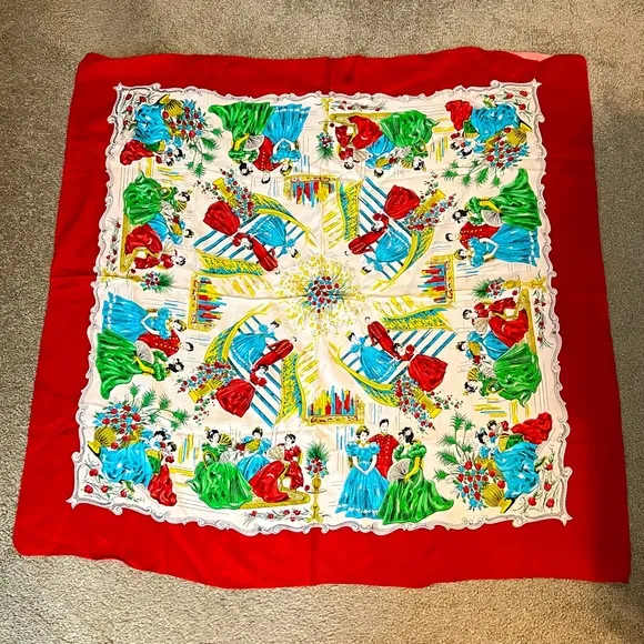 Vintage Square Scarf 34” Red Border No Tags Has FLAWS Fancy Women - $15 - From Melanie