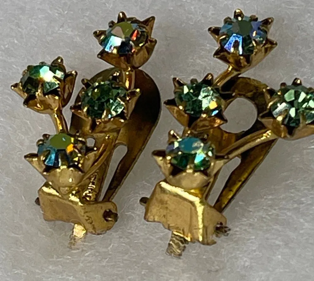 Vintage Star Austria Crystal floral spray clip earrings. Green - $21 - From Marie