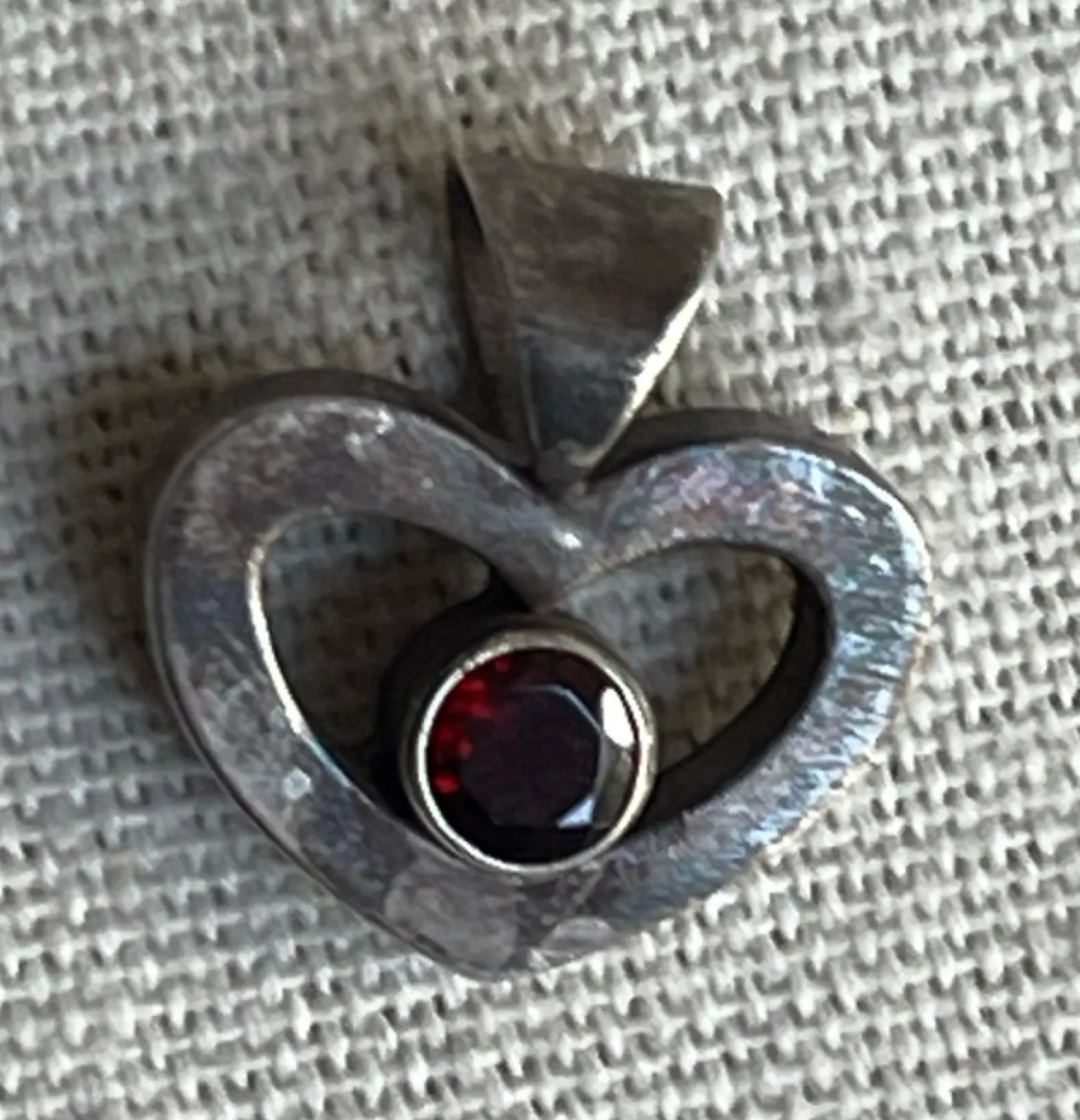 Vintage Sterling 925 silver heart pendant Red Garnet Stone Stamped - $88 - From Aice