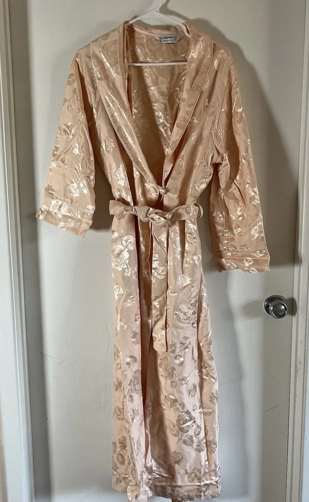 VINTAGE ST.MICHAEL ROBE Sz 42 44 L DRESSING GOWN SMOKING Foral Embossed Pink Size L - $35 - From Z