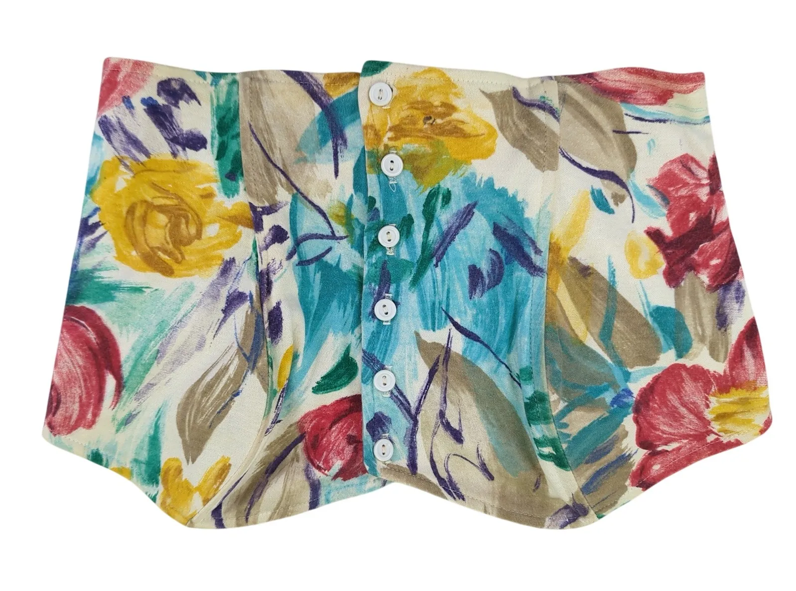 Style: Corset Top Type: Bustier Material: Cotton Blend, Polyester Accents: Button Closure: Button Pattern: Floral Strap Type: Strapless Features: Smocked Department: Women Opacity: Opaque Underwire Type: Wireless Garment Care: Machine Washable Country of Origin: United States Keywords: vintage top, floral print, smocked top, bustier, resortwear, summer top, strapless top, button front, Hawaiian made, tropical, boho, feminine, party top Please see photos for signs of wear, if any. Thanks for checking out my store! I have lots of items available to bundle. Happy to accept offers!