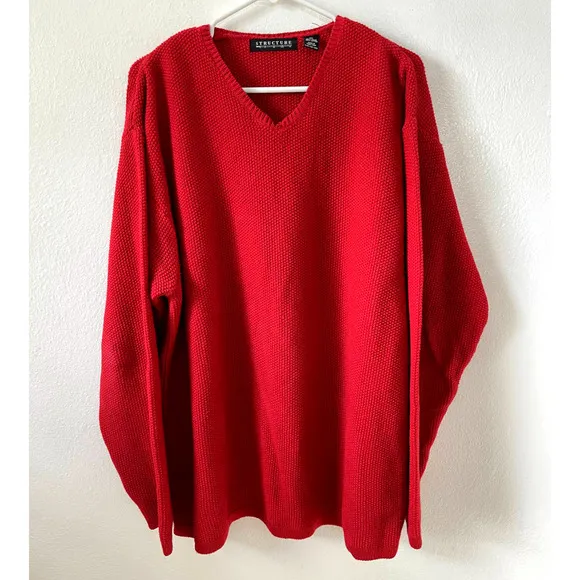 Vintage Structure Red Waffle Knit Long Sleeve Sweater Men Size XL V Neck Color: Red Size: XL Flat Lay Measurements: Bust: 26" Waist: 26" Length: 30" Sleeve: 23" Features: Long Sleeve, V Neck with intentional split for added extra flare, Heavyweight, Material: 55% Ramie, 45% Cotton Good used condition without any major wear and tear. Mild fading from being washed and mild pulling of stitches. Reach out with any questions. I am always happy to help. THANKS for supporting my business!!! Tags: natural fibers, vtg, Workwear, business, business casual, interview, career wear, office wear, office chic, academia, preppy, uniform, school, school uniform, polo, regular, classic, Oxford, solid, secretary, geek, nerd, librarian, teacher, prep, winter, fall, grandpacore, nostalgia, 90s, 1990s, y2k, 2000s, slouchy, nostalgic, cabincore