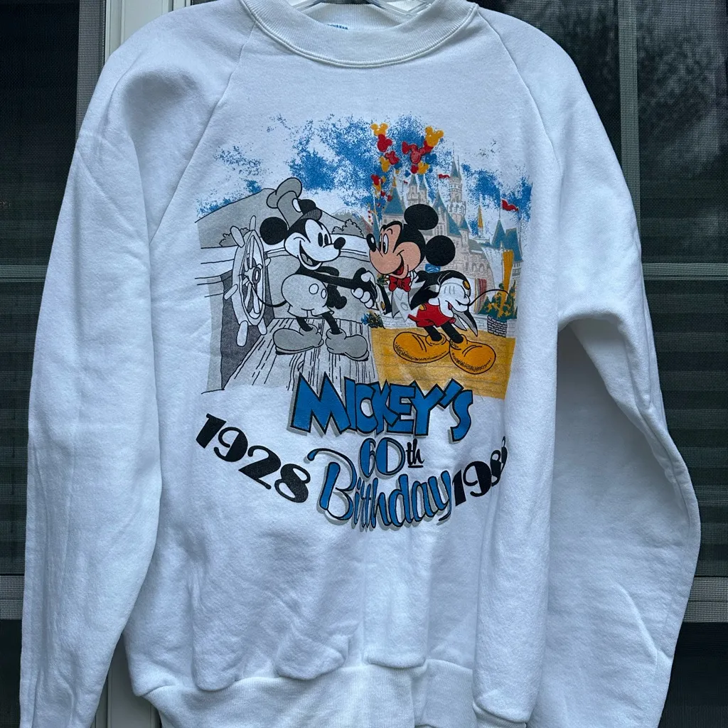Celebrate Mickey's 60th with this classic Disney crewneck. Features vibrant design and iconic charac... Show more