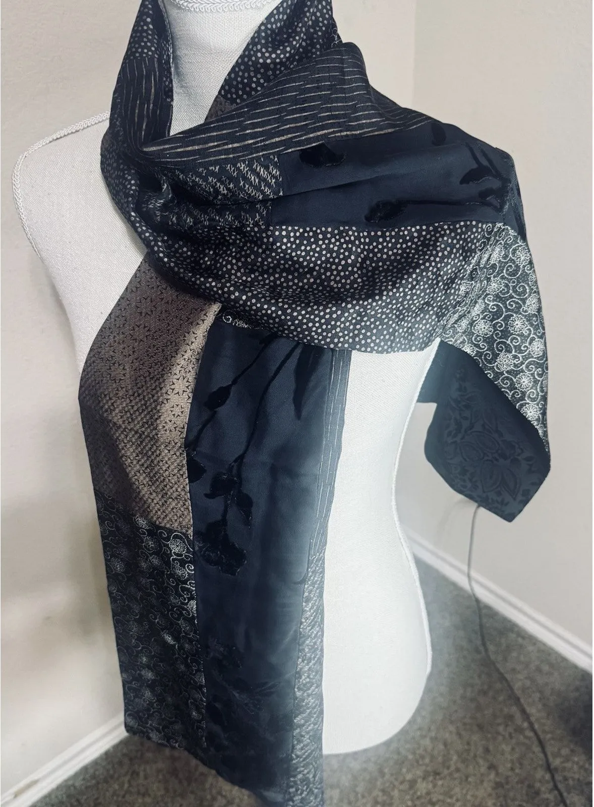 Vintage T. Camey Kimono 100% Silk Scarf Brown Black Korea sash obi - $25 - From Lisa