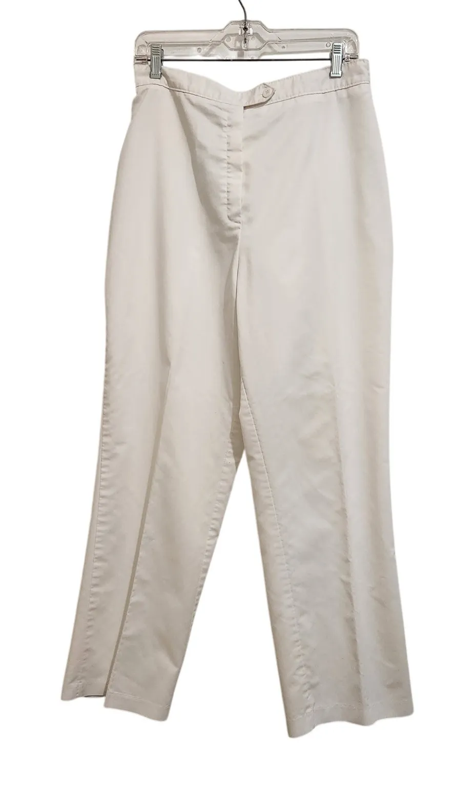 Great used condition Measurements: Waist laid flat = 15.5 in Rise = 13.25 in Inseam = 29 in These vintage tailored trousers feature a sophisticated high-rise silhouette and a discreet elastic waist for a seamless blend of structure and comfort. Crafted in a crisp white palette with a polished straight-leg cut, these size 16 dress pants are a versatile essential for a refined, professional minimalist aesthetic. workwear office corporate clean girl casual classic party special occasions eventwear minimalist old money vintage luxury professional modern white basic trendy stylish