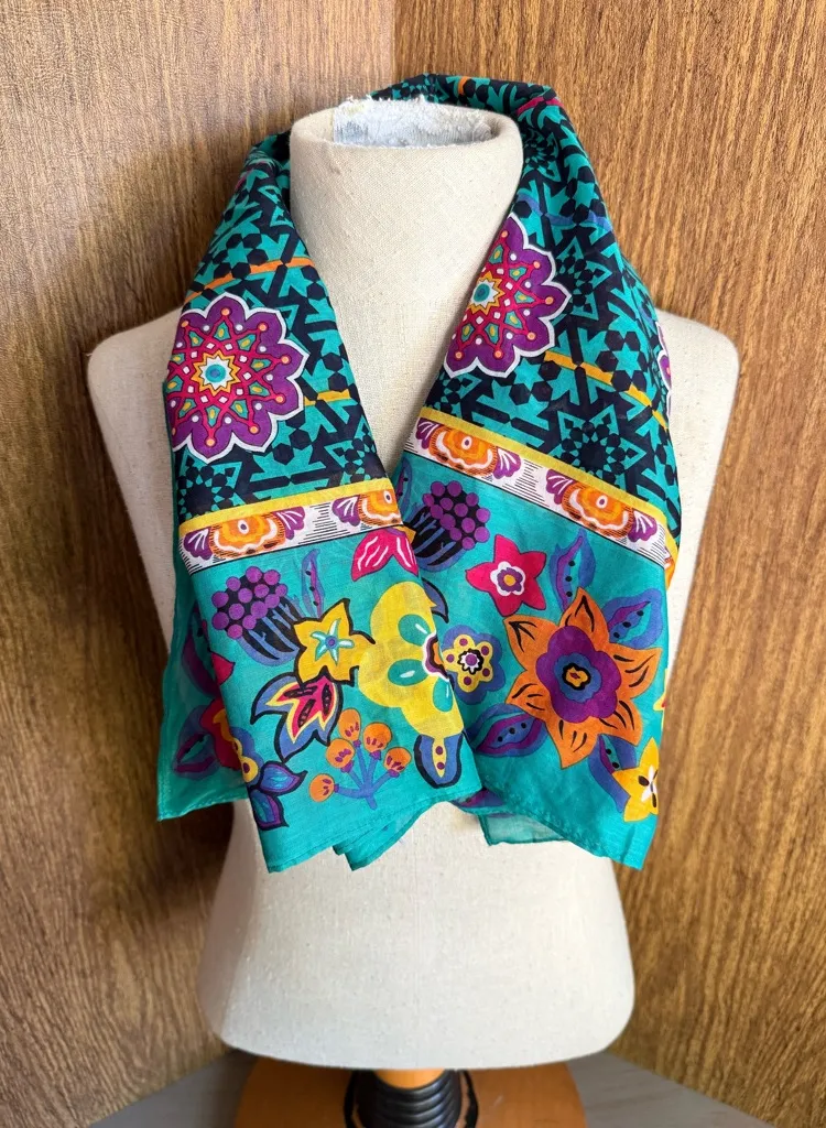 Vintage Talbots cotton square scarf made in Japan, measuring approximately 35” x 35”. Features bold,... Show more