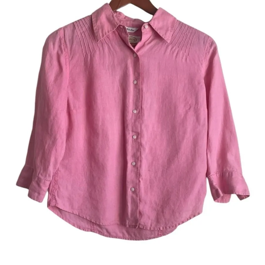 VTG Talbots Pink Linen Button Up Top Petite Preppy Classic Well cared for condition - no flaws noti... Show more