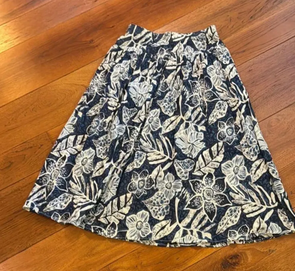 Vintage Teddi Cotton Navy & White Floral Midi Skirt size M Size M - $40 - From Brittany