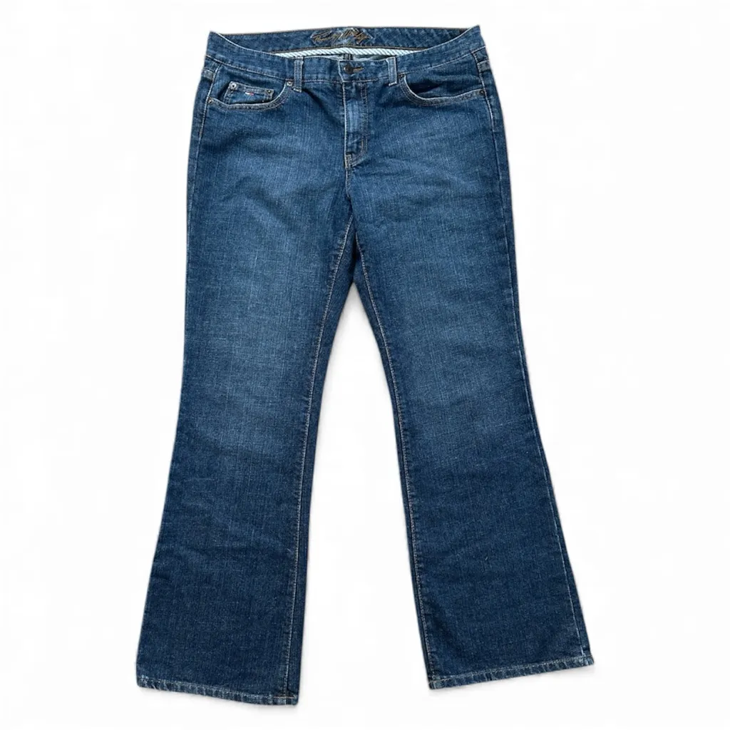 Tommy Hilfiger jeans, Y2K jeans, Y2K bootcut, women’s bootcut jeans, vintage denim, retro jeans, low rise jeans, 2000s style jeans, size 14 jeans, medium wash denim, classic bootcut pants, Hilfiger bootcut, Y2K fashion, early 2000s jeans, designer denim, trending jeans, flattering fit jeans, festival denim, everyday denim, western, coastal cowgirl