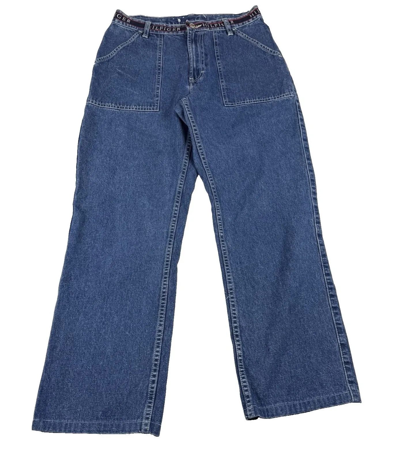 Vintage Tommy Hilfiger Wide Leg Jeans Women's Size 8 Logo Waistband 90s‎ Baggy Blue - $26 - From Wild